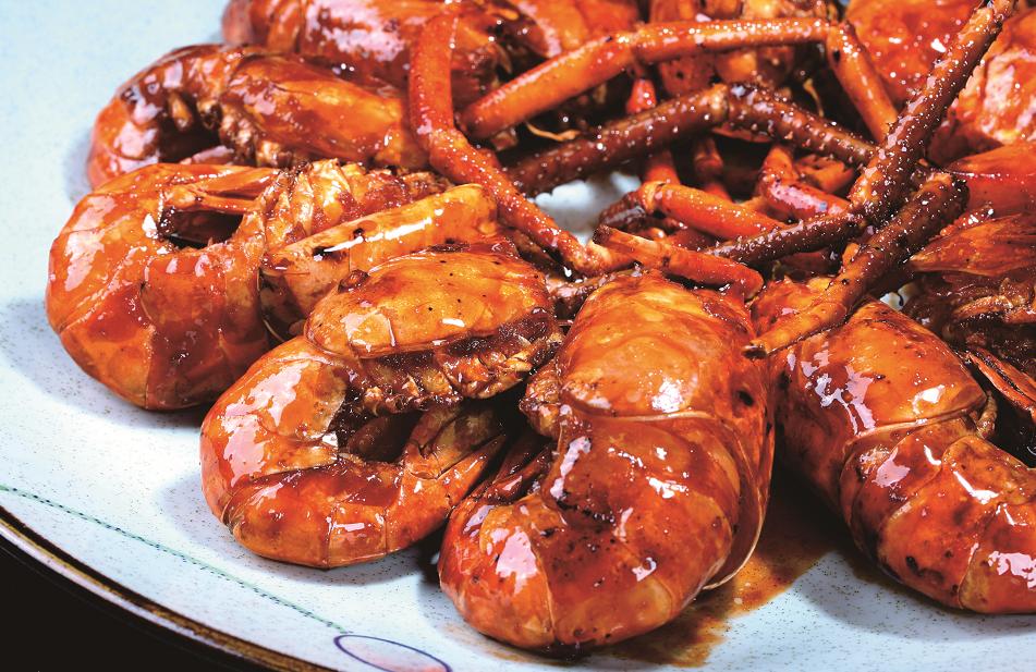 美极干煎罗氏虾、炒牛奶拼野鸡卷