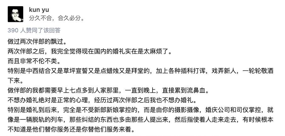 将婚礼轻量化,在社交网络上已经成了不少人的共识。