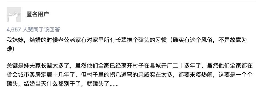 北方婚礼凌晨就要去接亲,南方更是把这场仪式从清晨办到深夜,体力强如超人估计都要直呼顶不住。部分地区闹洞房、闹伴娘等恶俗行为更是拉满了生理不适感,结婚要给长辈挨个磕头也在很多乡村是常规操作。