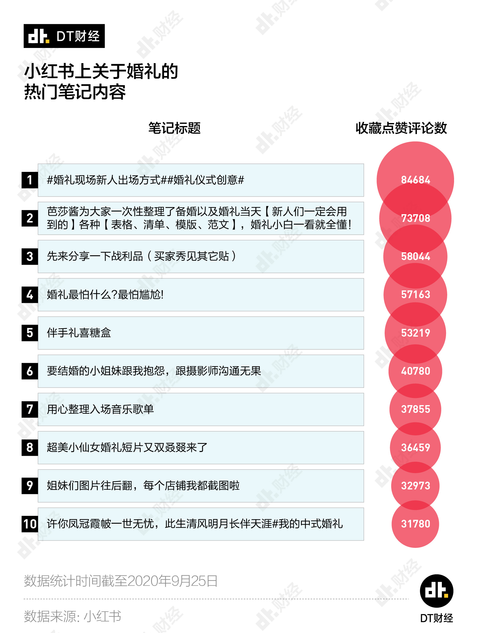 小红书上围绕婚礼的热门笔记里,讨论度最高的有新人出场的创意、备婚所需的所有excel文件和资料包、结婚当天新娘从头到脚的服装、配饰分享等等。