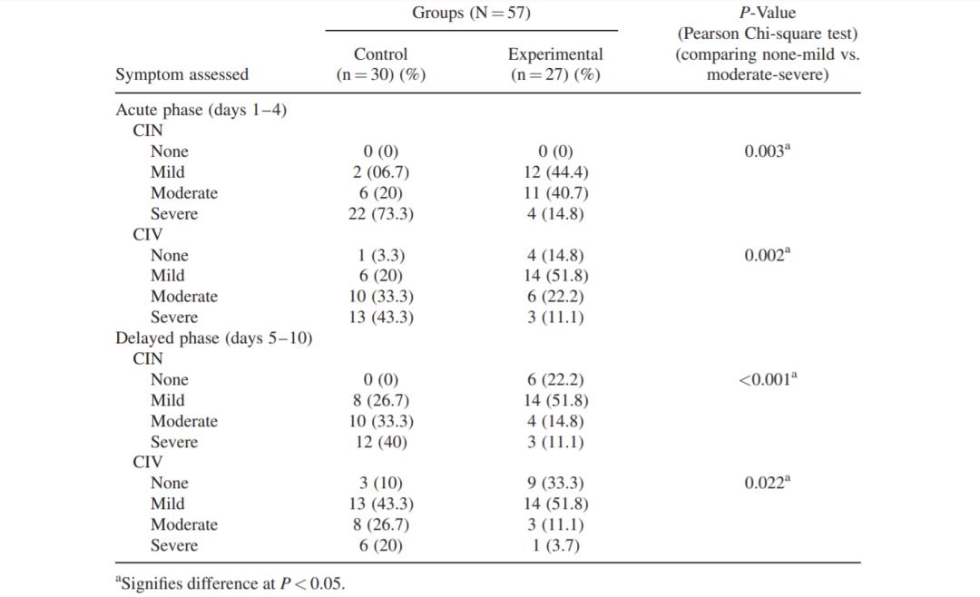4.Anti-emetic effect of ginger powder versus placebo as an add-on therapy in children and young adults receiving high emetogenic chemotherapy.DOI: 10.1002/pbc.22778.