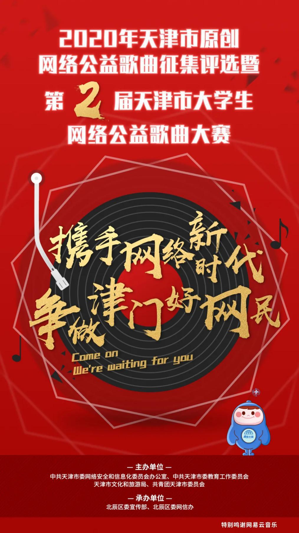 自活动开展以来,全市各高校、机关单位、社会团体及广大音乐爱好者踊跃报名,截至9月18日,共收到原创公益歌曲70首。作品创作题材各异,曲风多种多样,展现了新时代天津人的蓬勃朝气,更体现了新时代年轻人的使命和担当。经过评委会初步评选,最终选出原创公益歌曲“TOP20”进行展播。本轮评委会由旅法男中音歌唱家时可龙,中国音乐家协会会员、天津市音乐家协会会员、词曲作家梁吉坤,网易天津教育频道总编辑天津市音乐家协会理事王健担任。