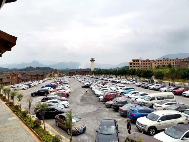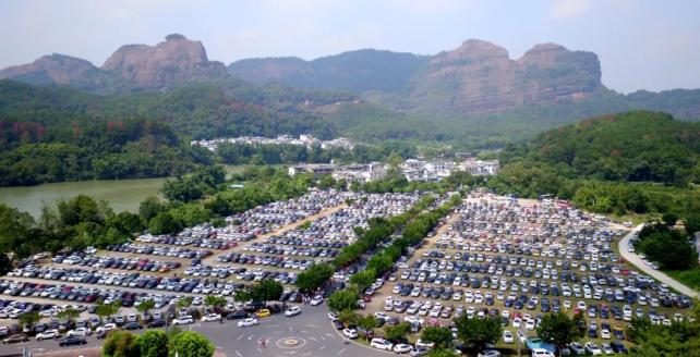 丹霞山停车场停满车辆。刘嘉健 摄