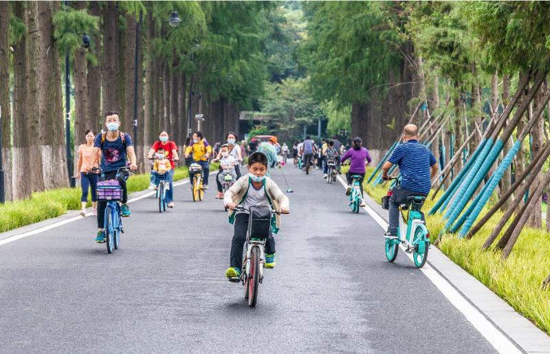 10月1日,市民在东湖绿道骑行。城市摄影队 泳往直前 摄