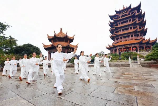 10月2日,在黄鹤楼前打太极拳。城市摄影队 柯志刚 摄