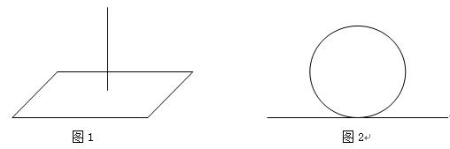 这首诗描绘了雄阔、壮美的大漠图景。从几何学的角度上看,“大漠”可视为一个平面,而直上“孤烟”是垂直于地面的直线(图1)。第二句是是将横卧的长河视为一条直线,逐渐下沉的落日被视为一个圆,“长河落日圆”便是一个圆切于一条直线(如图2),两图对照,泾渭分明,简洁明了,刚柔相济。
