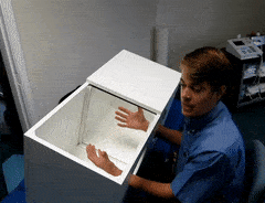 所谓的“镜箱”其实是一个以“幻视”治疗幻肢的欺骗大脑装置。他在一个纸箱中间插入一面镜子,再让患者将双臂(好臂与断臂)同时伸入箱中。