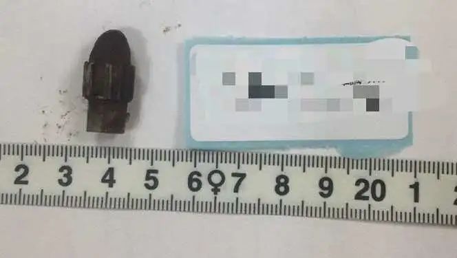 罗医生进行了腹腔镜联合阴道探查术,在阴道探查时从阴道内取出了一枚长3cm,直径1cm的圆锥形异物,仔细辨认后发现这竟然是一枚活动铅笔的笔帽。
