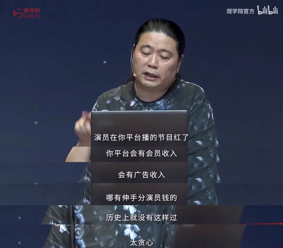 「现在就是所有人给平台打工,还要竞争上岗。如果你不肯分约,平台有的是愿意分约的艺人来换掉你,他们甚至可以自己造星。」