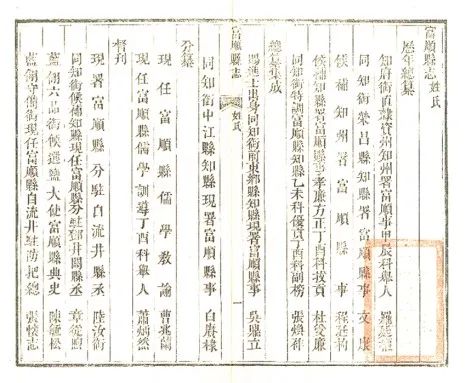 当然,因囿于科举时代“本籍回避”制度的规定,无数科场得意的滇籍才子不得不宦游四方,由士而仕,在追求“治国平天下”的历程中实现自己的人生价值。其中,有数十人到遥远的富顺,或任知县,或任县丞、主簿、典史、教谕、训导等佐属官,呈现富顺职官史上特有的云南现象。