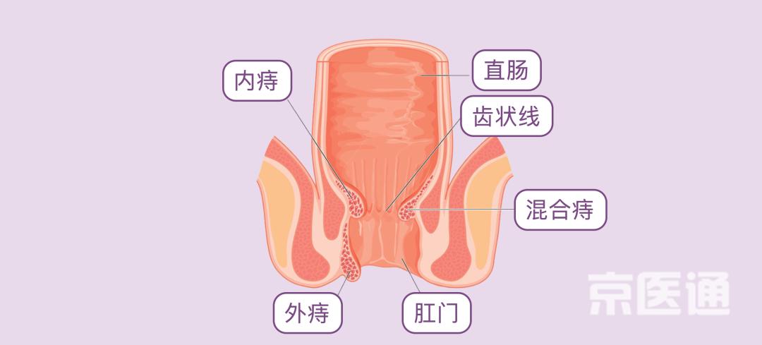 痔疮大致可以按照出现部位不同分为三种类型,内痔、外痔、混合痔。