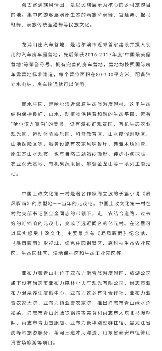 海古寨满族风情园—龙鸿山庄汽车营地—丽水庄园—中国土改文化第一村—亚布力镇青山村