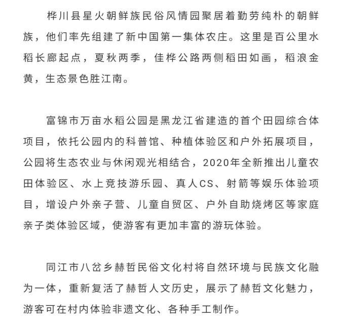 桦川星火朝鲜族民俗风情园—富锦市万亩水稻公园—八岔乡赫哲民俗文化村—抚远市抓吉赫哲民俗村