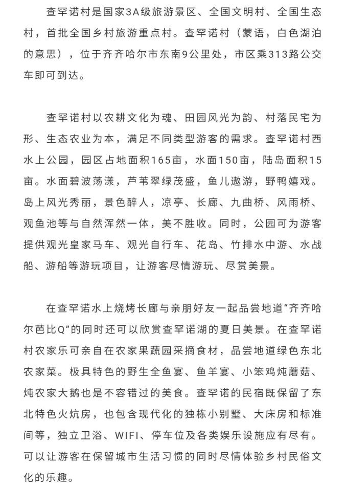 查罕诺村一日游花岛—水上公园—水上烧烤长廊—农家乐果蔬园采摘—马车/自行车环村游—农家乐餐饮