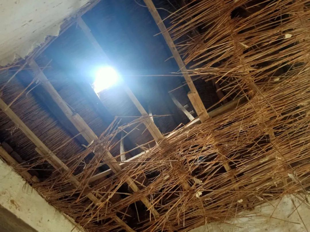 10月5日上午,家住济南天桥区通惠街的刘先生和母亲正在自家院里坐着歇息,突然“轰”的一声巨响,一根六米长、直径达10厘米的钢管从天而降,将屋顶砸穿后卡在了窗台上。刘先生的房子后面仅靠着一栋在建楼,工地的负责人表示,是因为工人在施工的时候不小心,钢管才掉下来的。