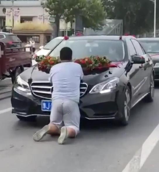 这个假期,在河南濮阳,一名男子多次拦婚车跪地要钱。目击者称,“不给钱就叫爸爸,给烟都不要,只要现金。”