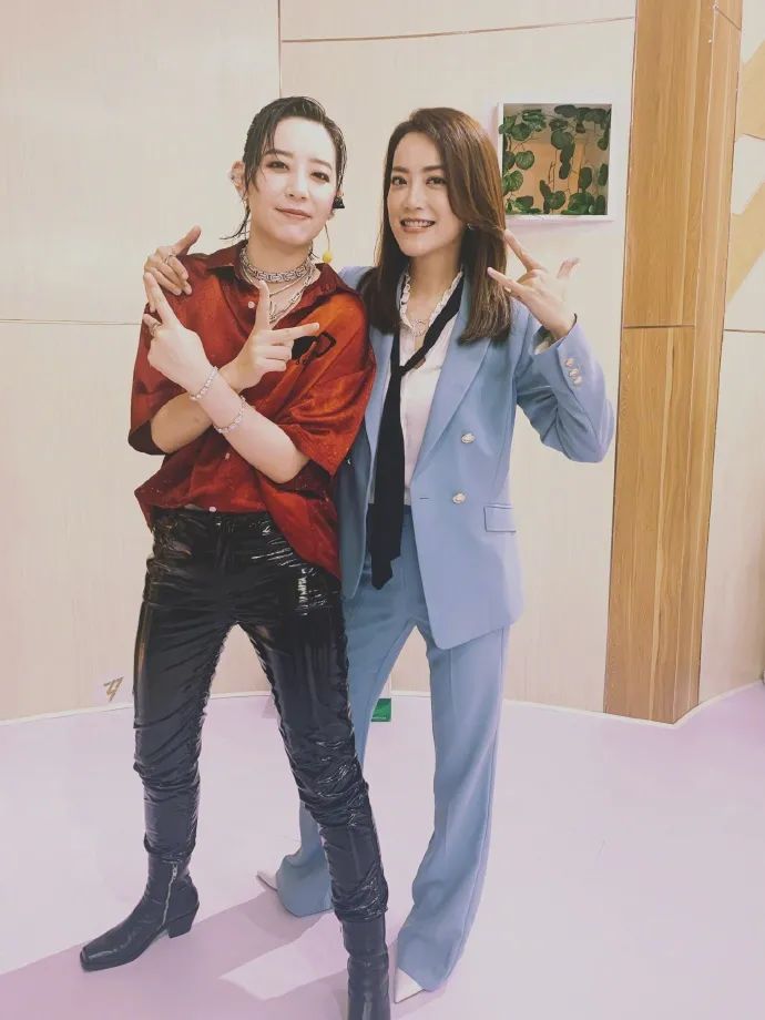 《乘风破浪的姐姐》成团夜,我在长沙大歌影视基地的拍摄大棚里亲眼见到身穿一套淡蓝色西装的霍汶希,和一旁边穿着花西装配短裤的杜华相比,足足大了杜华九岁的霍汶希在时装品味和皮肤保养上,明显胜出,尽显了港女的穿着功力: