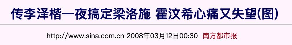 后来梁洛施恋上李泽楷,李泽楷替她出头,和英皇打起解约官司,和霍汶希隔空对骂。霍汶希说“我很心痛,这次打击很大”,“我手下30个艺人,走的只有梁洛施一个人”。