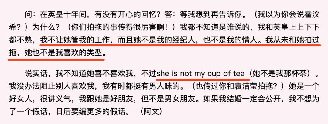 还说霍汶希总是“幼稚搞绯闻”,让他很不爽。