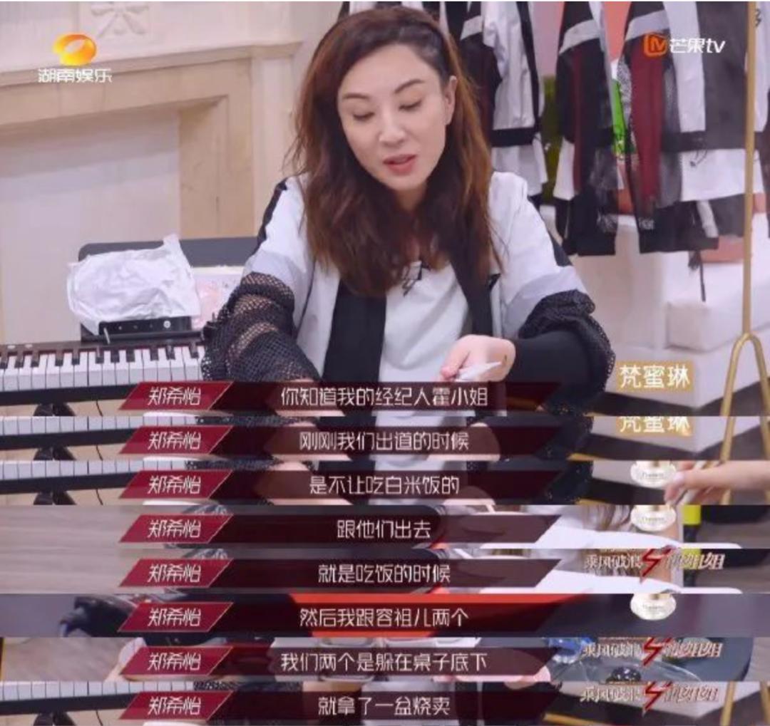 郑希怡在《乘风破浪的姐姐》里聊过霍汶希的铁腕治理,不让她们吃饭,她和容祖儿只能钻到桌子下面偷吃。