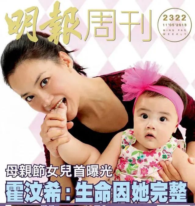 2013年母亲节,香港主流娱乐周刊用霍汶希为封面,宣布了这位著名美女经纪人未婚生女的消息。