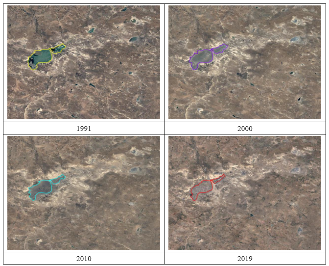 察汗淖尔流域1991、2000、2010、2019年6-8月遥感影像。 督察办供图