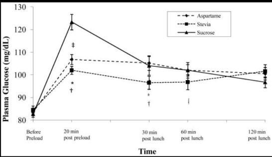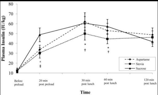 [2]Anton SD, Martin CK, Han H, Coulon S, Cefalu WT, Geiselman P, Williamson DA. Effects of stevia, aspartame, and sucrose on food intake, satiety, and postprandial glucose and insulin levels. Appetite. 2010 Aug;55(1):37-43.
