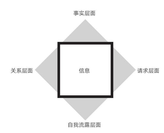 别人的每句话,你都可以用这4层来理解,这就是《绝地谈判》这本书里教给你的交流四边形理论。所谓交流四边形理论,就是说,一个人说的每句话、每个动作、每个表情,其实都包含了四个层面的信息,分别是:事实层面、请求层面、自我流露层面和关系层面。你对这四个层面的信息了解得越多、越全面,对对方动机的理解就越准确。