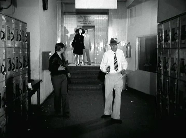 若与作为定格画面的组合析取(syntagmatic disjunction)的标准电影时间对比的话,我们能轻易理解此类特殊图像中蕴含的心理冲击。叙事时间的突然消失要求我们在理解图像时,必须留在图像内部,且不能逃避碎片式的时间模式。罗伯特·隆哥的作品正处于此时间性的混乱之中。去年,他的生动表演《一个好人的声程》(Sound Distance of a Good Man)在富兰克林弗尼斯(Franklin Furnace)上映,分为三部分,其核心影像是没有任何动作的电影(除了电影中固有的闪烁效果)——男子的上身弯曲,头向后仰,似乎在抽搐。在静止的图像中,快速抽搐的姿势与静止的狮子雕像形成了对比。电影继续播放静止的图像,整部电影只有定格画面,此外无他。但若电影画面没有任何时间距离的变化(除却表演事件的时间),它的构图则依循颇为复杂的场景。隆哥的摄像机瞄准了一张照片,更准确而言,一张蒙太奇照片——截取自组照、同一镜头的副本的单独元素。镜头中,男子的着装与姿势模仿了隆哥之前展览中的铝制浮雕,而浮雕来自报纸上的剧照——法斯宾德(Fassbinder)的电影《美国士兵》(The American Soldier)。