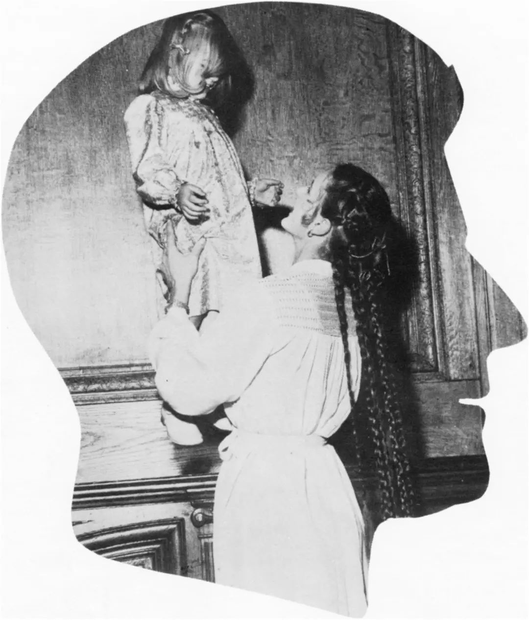 虽然谢里·莱文对照片的运用远不如布朗特奇那般复杂,但二者的主题是一致的:观者与既显现又隐藏的图像之间的距离,以及由此而来的欲望。莱文用简单的策略揭露图像的文化神话地位及其产生的心理共鸣。比如最近由三个部分构成的系列作品,莱文根据华盛顿(Washington)、林肯(Lincoln)与肯尼迪(Kennedy)三位总统照片的象征轮廓裁切了三张母子照。莱文应对的流行神话在图像的轮廓中得到印证,它们是硬币的正反面;照片从时尚杂志上裁切而来。两张图像的对立以对照观看的方式出现:肯尼迪的轮廓勾勒了母子像,反之,后者填充了前者。图像没有独立的意义力量(图像不能代表其描绘之物),图像的呈现方式赋予其意义(比如,硬币的正反面、时尚杂志的版面)。莱文从大众文化的常见处偷走图像,并颠覆它们的神话。