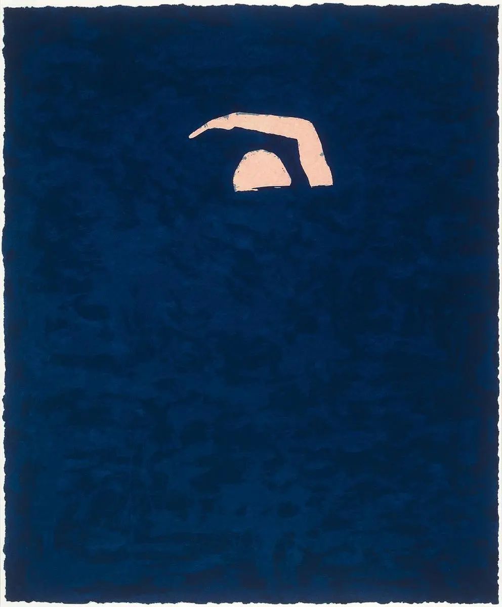 近期,惠特尼博物馆(The Whitney Museum)举办了一场名为“新影像绘画”(New Image Painting)的展览,参展作品的性质、意图与意义的差异均被隐藏了,它们被迫成为一个整体,因为在多数情况下,可识别的图像是最微不足道的特征。事实上,所有作品的最核心之处,在于保留绘画的完整性。比如,展览中苏珊·罗滕伯格(Susan Rothenberg)那幅非常抽象的马。但由于马在绘画表面的作用,使它类似网格。她解释道,“之所以选择马,因为它的比例分割恰到好处。”[16]此次展览最成功的作品当属罗伯特·莫斯科维茨(Robert Moskowitz)的《游泳者》(The Swimmer)——游泳者的身影从蓝色区域浮现,这对绘画区域与水域造成不可调和的双重解读。因此,这幅画无疑讽刺了所谓的现代主义媒介。