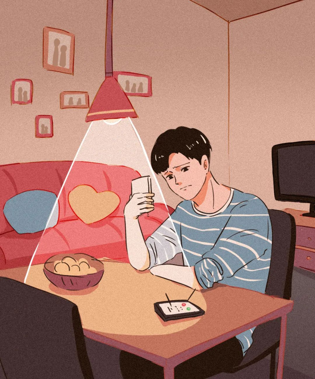 在外吃饭时,他很自然地把女友的头发往后撩,并用发圈束起来;在家看电视时,女友一个眼神,他就知道该换台了…