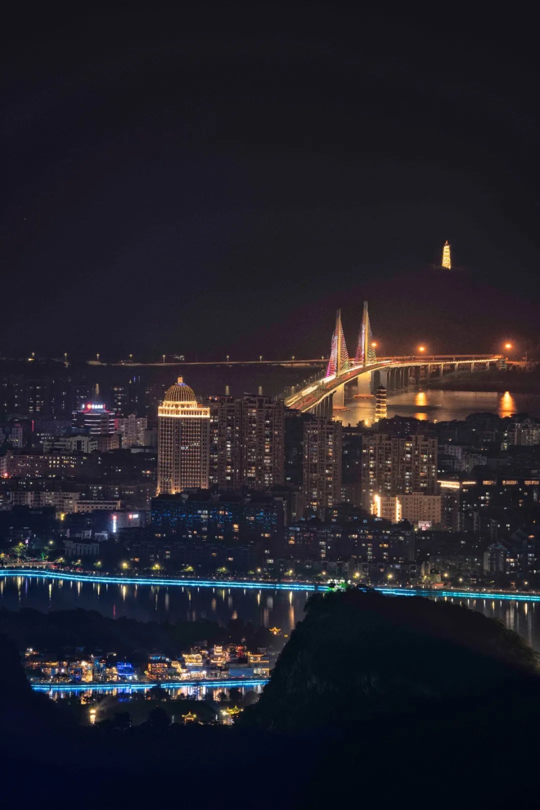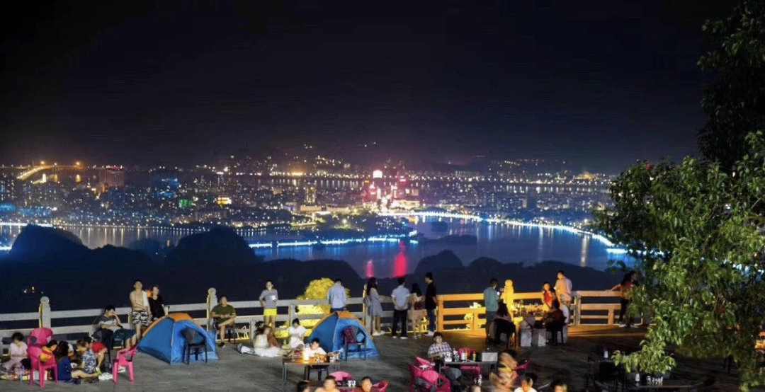 在七星岩景区附近观赏城市的夜景,