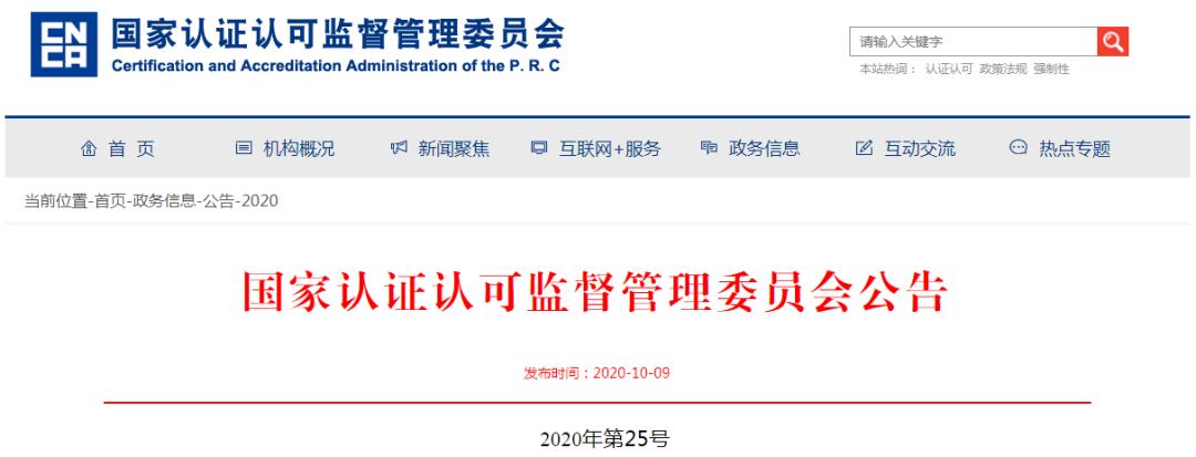 名单 | 2020年第三批强制性产品认证实验室日常指定决定发布