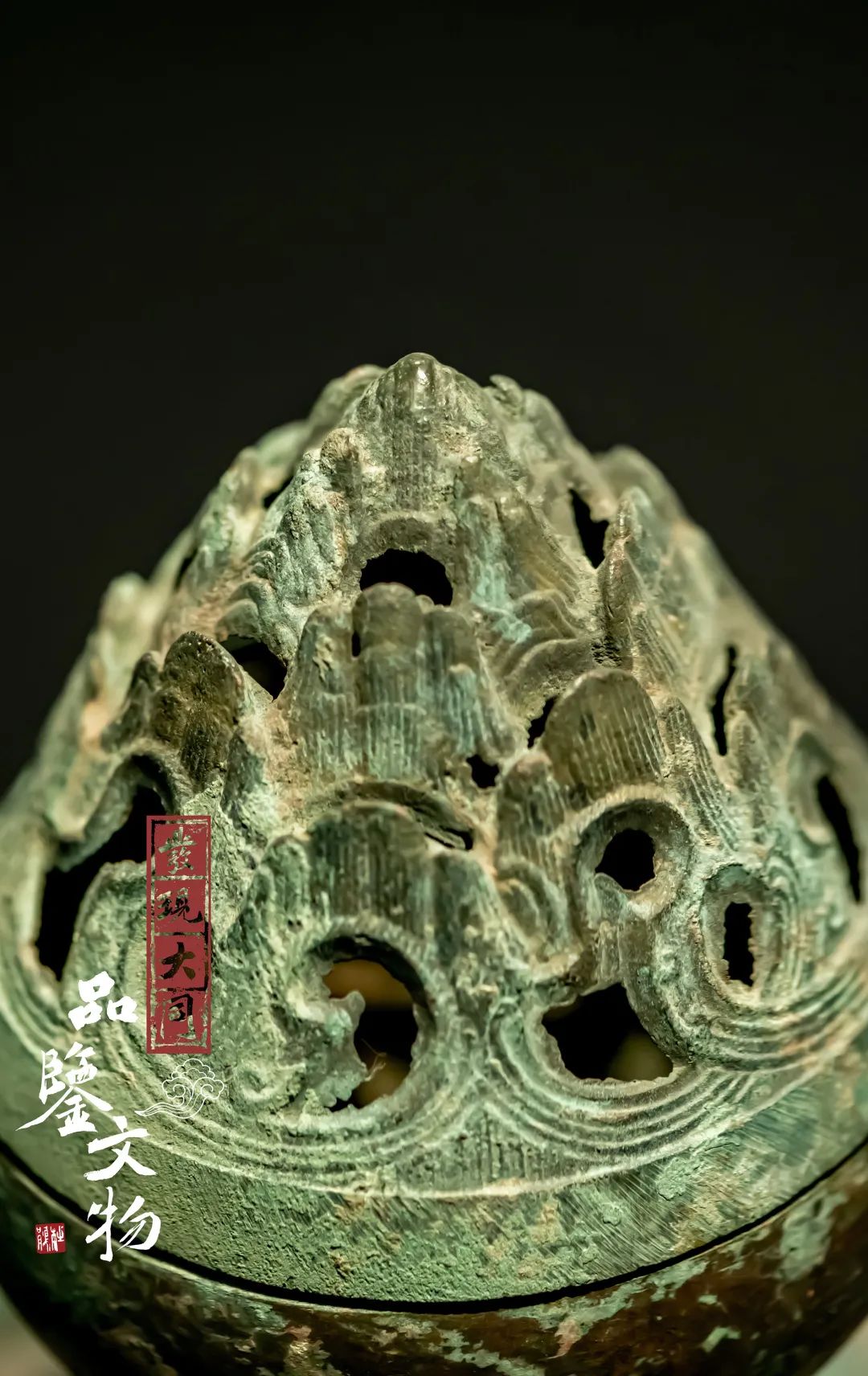 博山炉下有底座。有的遍体饰云气花纹,有的鎏金或金银错。当炉腹内燃烧香料时,烟气从镂空的山形中散出,有如仙气缭绕,给人以置身仙境的感觉。02