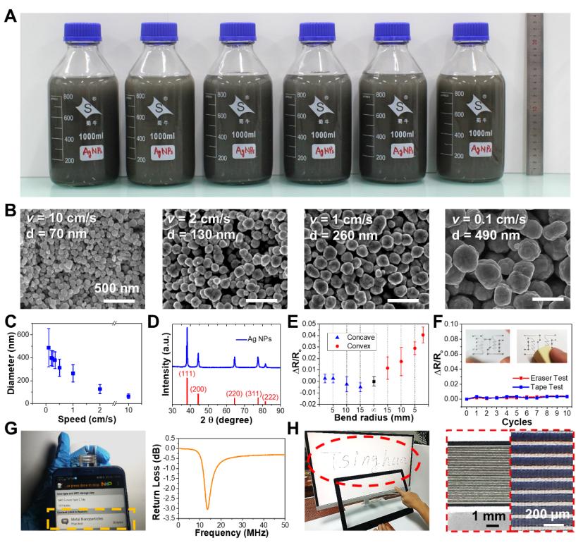 利用REDS方法合成的银球状纳米颗粒,可以制备性能优异的导电浆料,用于印刷近场通信标签和触摸屏面板等电子器件。