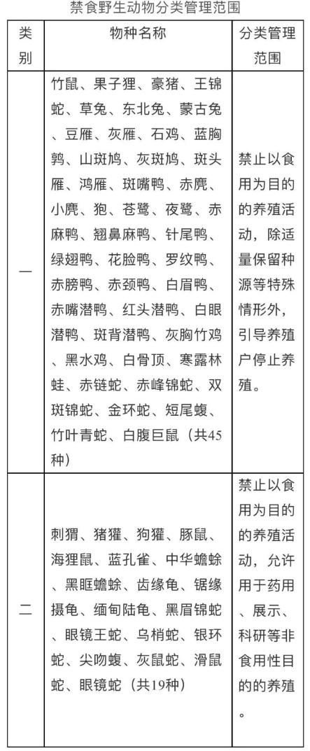 有专家认为,此次由主管部门明确对禁食的野生动物分成两大类管理,是对此前全国人大出台的禁食野生动物决定的细化,将更好地指导地方政府引导养殖产业良性地转产转型。