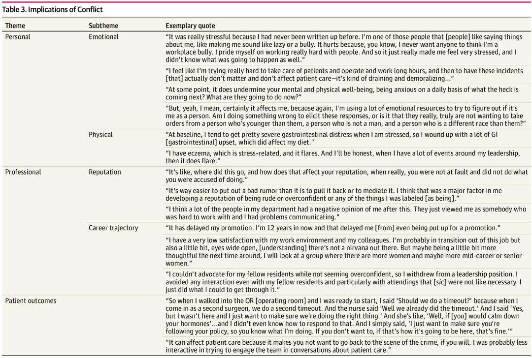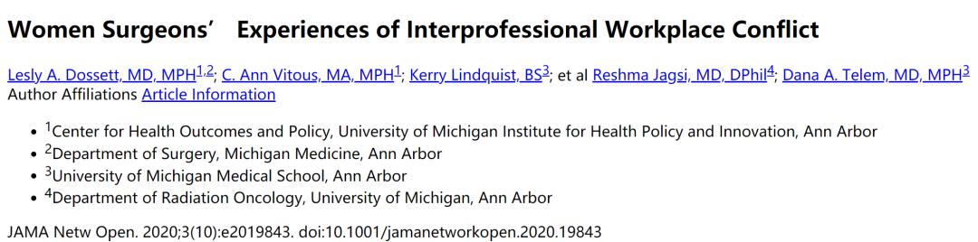 Women Surgeons’ Experiences of Interprofessional Workplace Conflict. JAMA Netw Open. 2020 doi:10.1001/jamanetworkopen.2020.19843