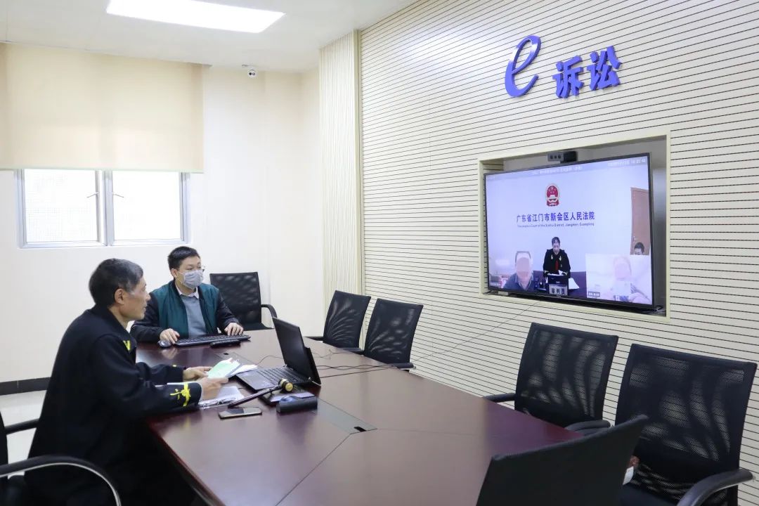 ▲疫情防控期间,新会法院运用“e诉讼”、“钉钉”软件、广东法院诉讼服务网等进行远程庭审。“多元化”调解化解矛盾促和谐
