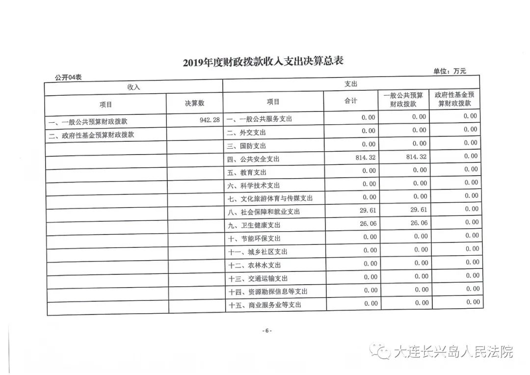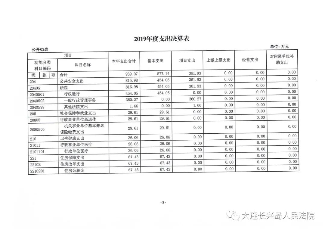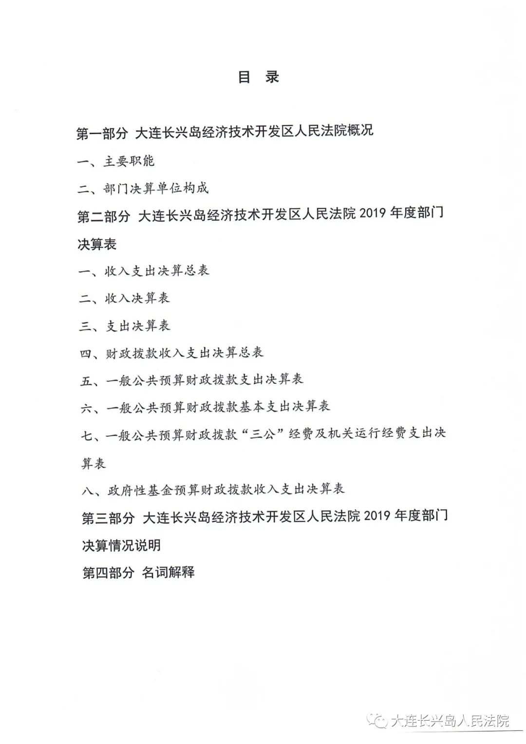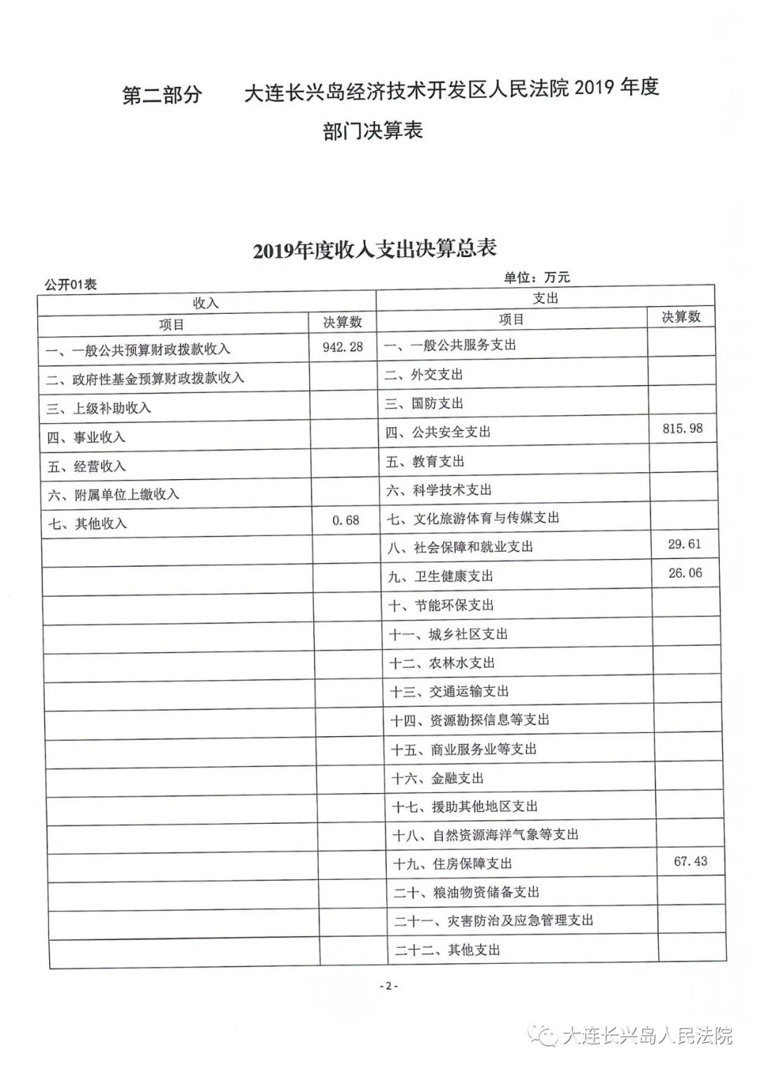 第二部分 大连长兴岛经济技术开发区人民法院2019年度部门决算表