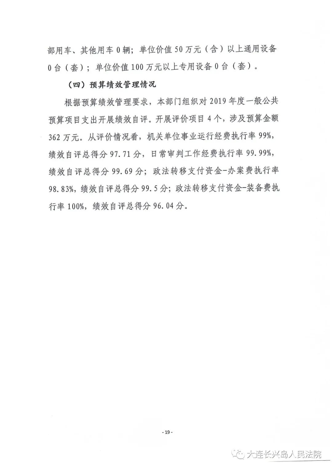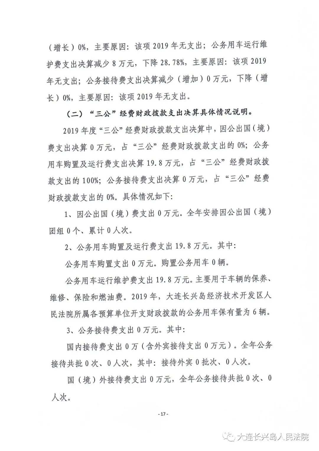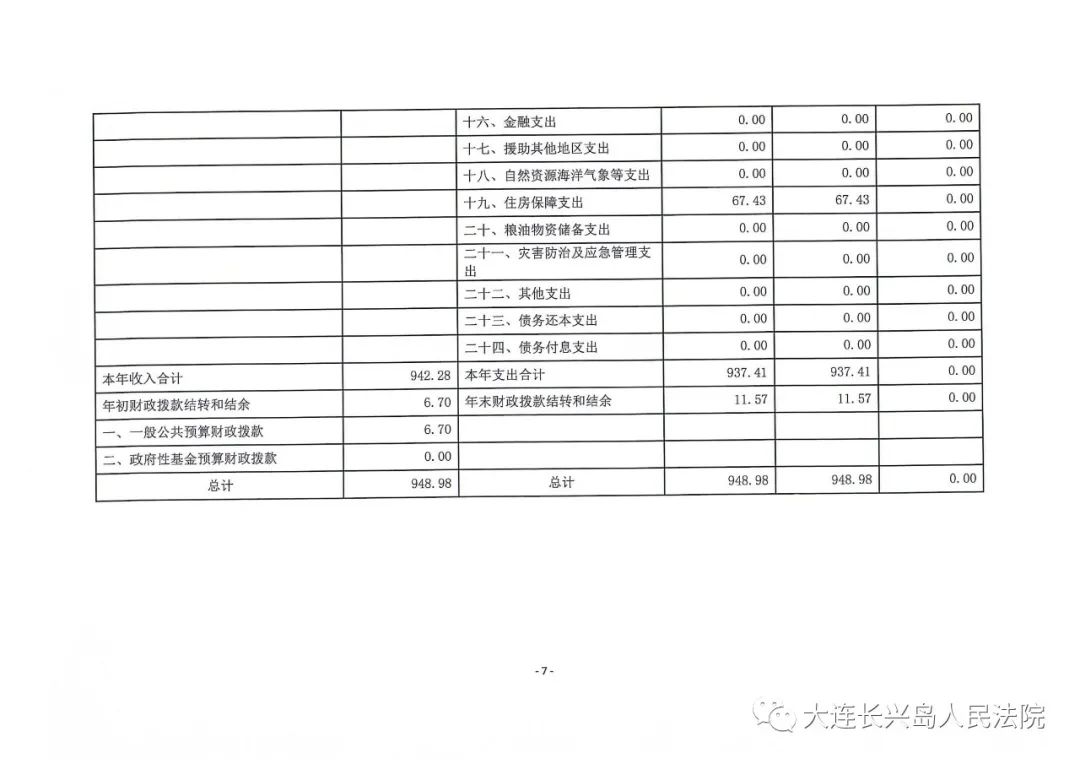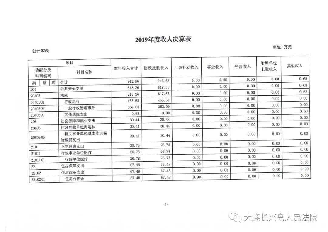 第二部分 大连长兴岛经济技术开发区人民法院2019年度部门决算表