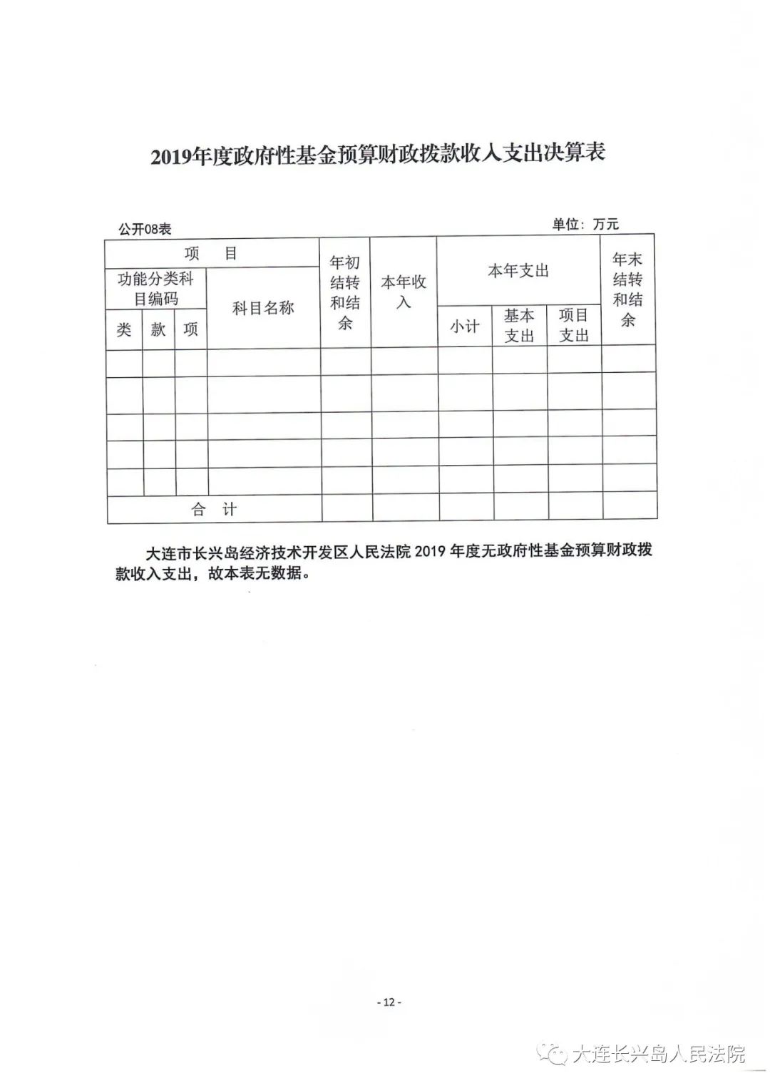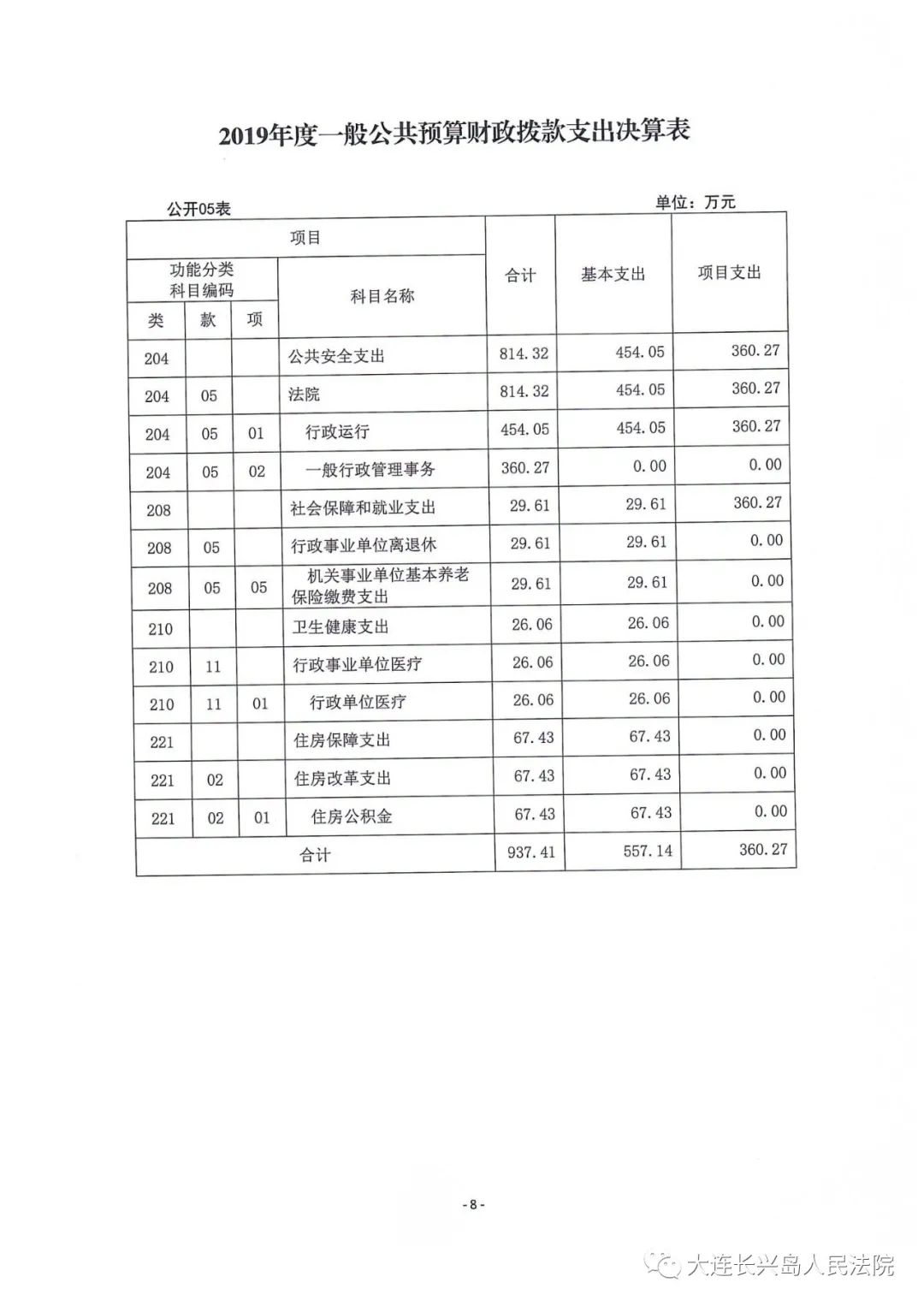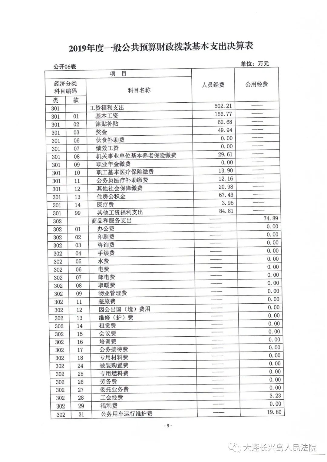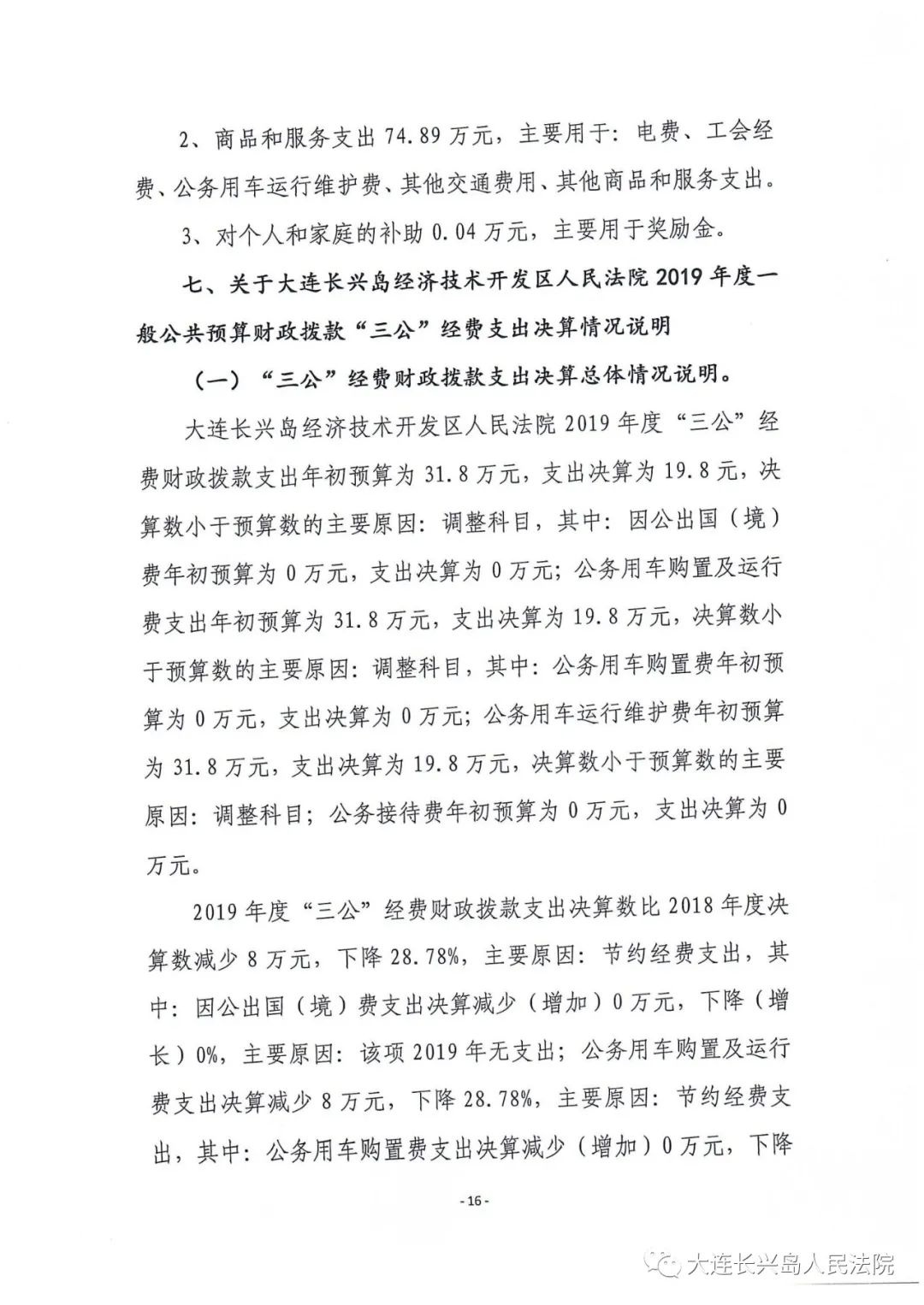 第二部分 大连长兴岛经济技术开发区人民法院2019年度部门决算表