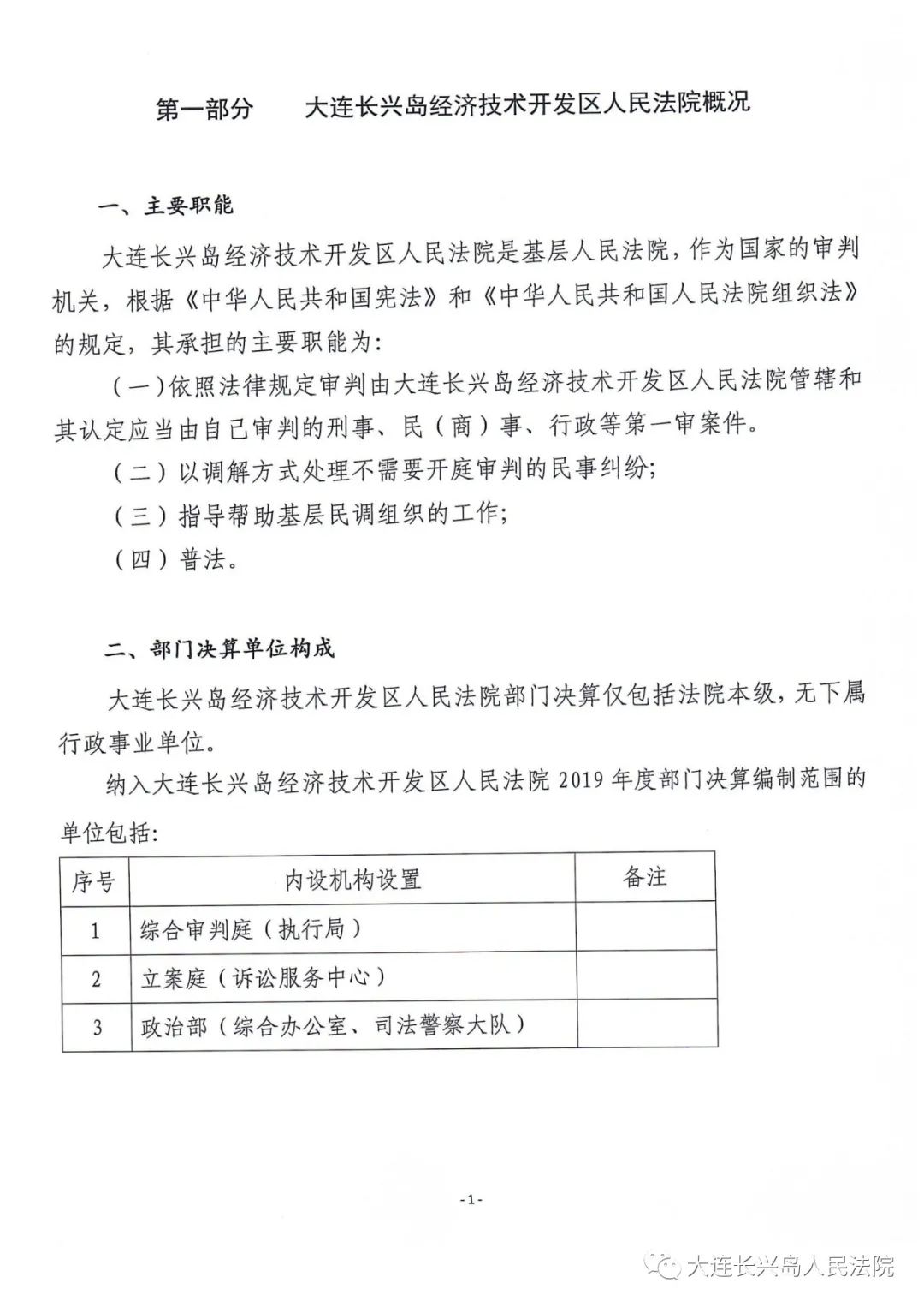 第一部分 大连长兴岛经济技术开发区人民法院概况