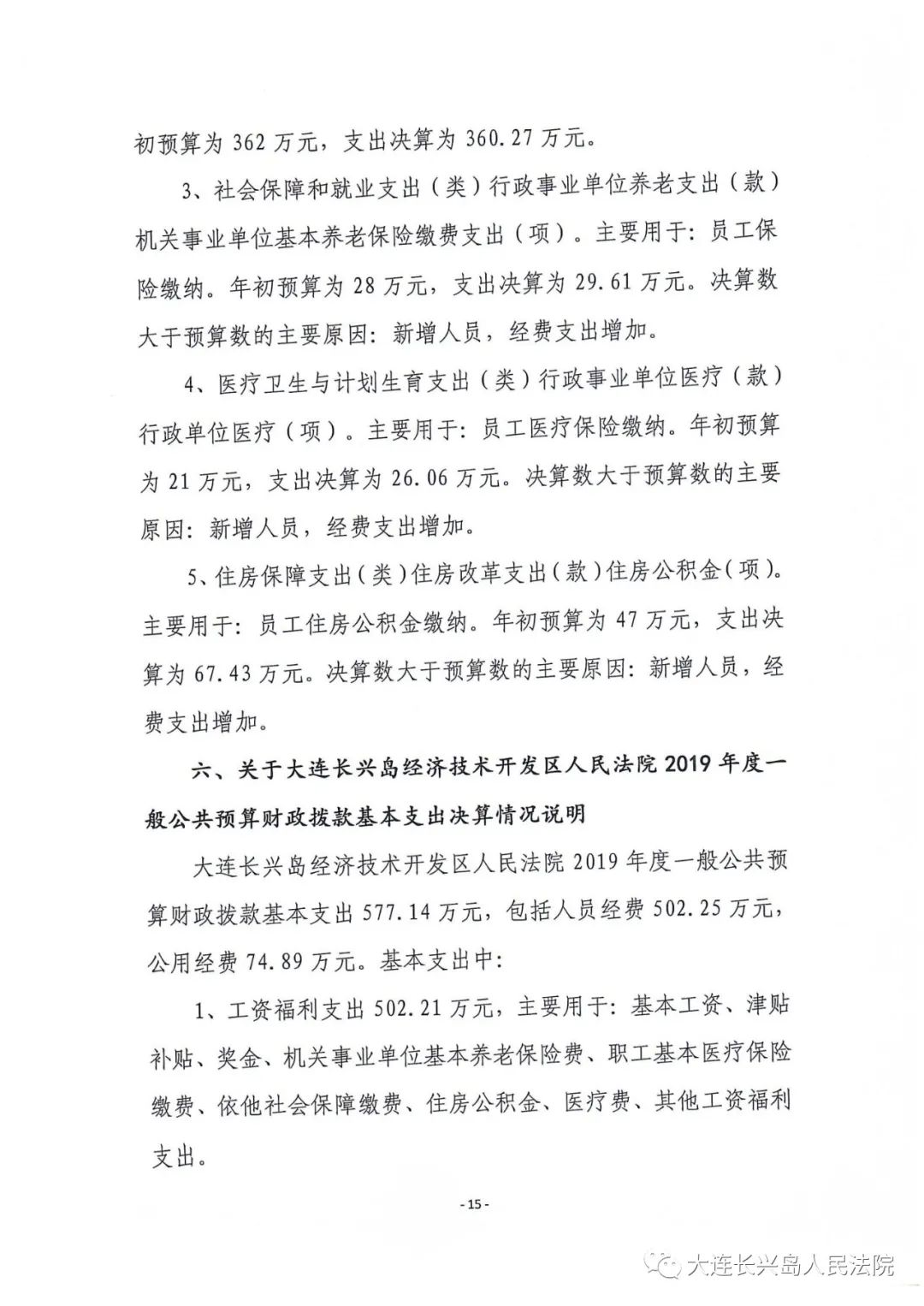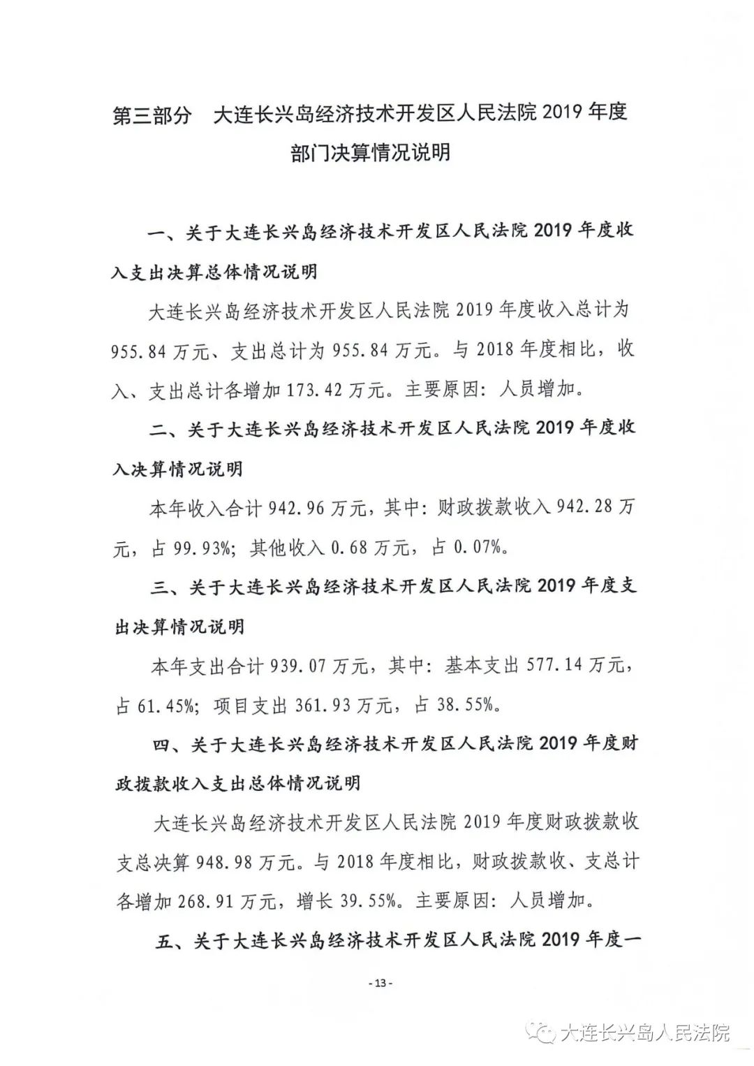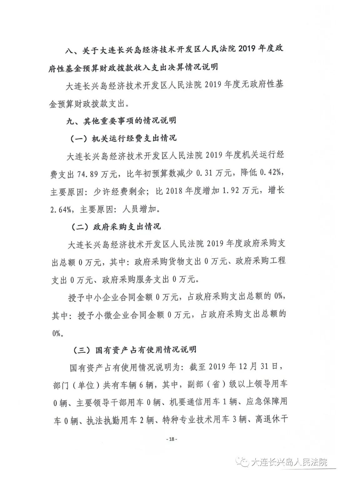 第三部分 大连长兴岛经济技术开发区人民法院2019年度部门决算情况说明