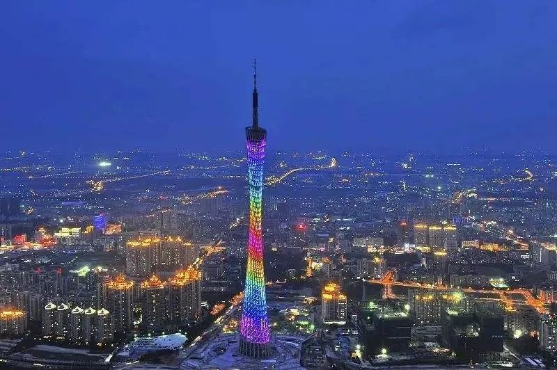 夜晚色彩炫丽的广州塔