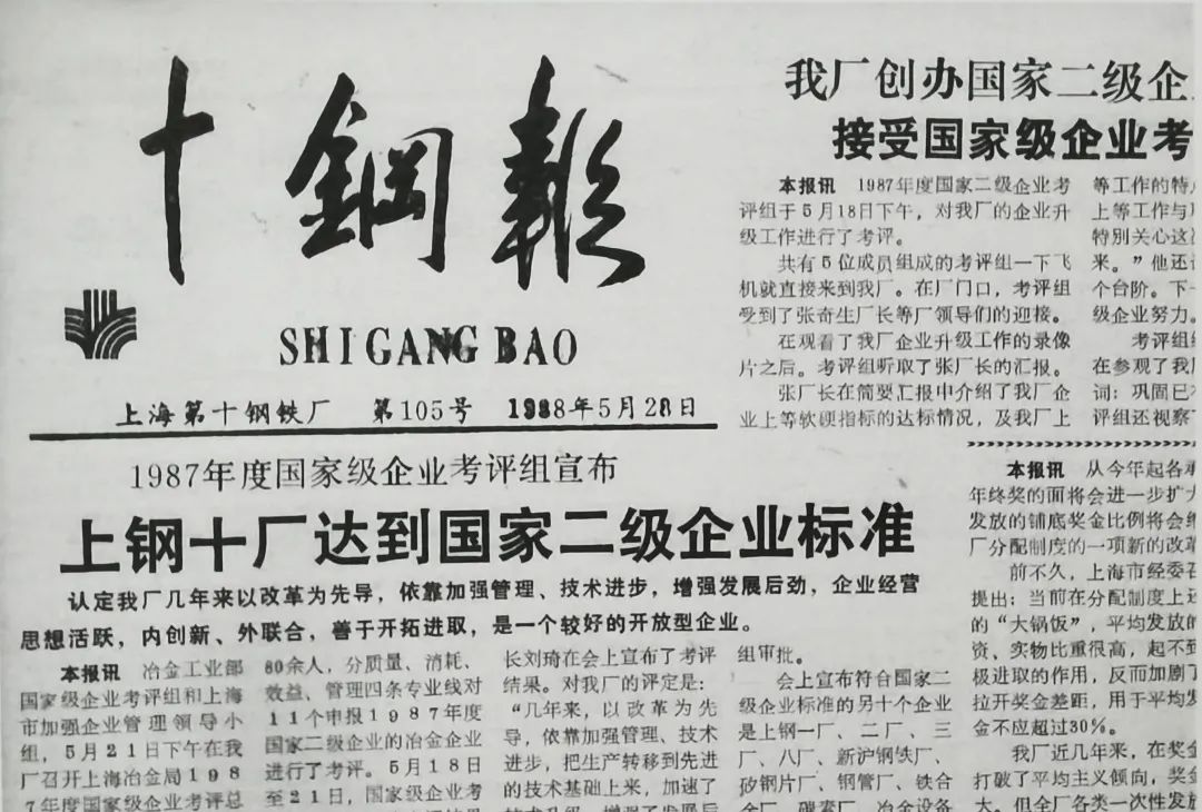 许多老十厂的员工说,上钢十厂最辉煌的时期,大约是1982、1983年的时候。当时,十厂每年的钢产量可以达到40万吨,交税就有 7、8000万!与此同时,员工们年年加工资,底下员工的标准工资从36元起,每人每年都是几元、十几元地加。1983年,改革开放的浪潮涌进了上钢十厂,十厂被选为市里企业改革试点单位。解放日报当时还报道过十厂“率先打破干部职务终身制”的事迹,十厂又成了上海市的第一。1984年,上钢十厂开始了干部聘用制改革,更在全国率先实行了厂长负责制以及干部聘用制。当时的上钢十厂,确实是相当的风光。