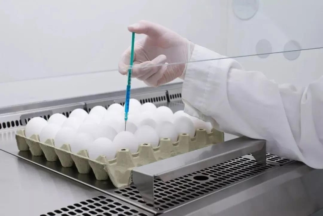 科学家在确定培制疫苗的种株后,会将其注入鸡胚,然后孵化并收集病毒,再经过一系列检测,完成疫苗的制备。