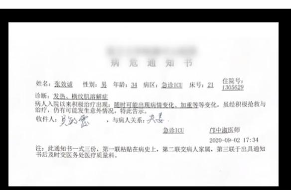 因为病情相对严重,吴敏霞作为患者家属还为此签署了病危通知书。