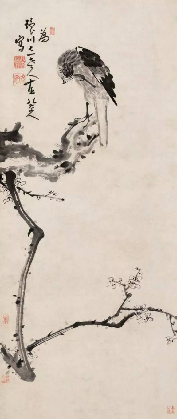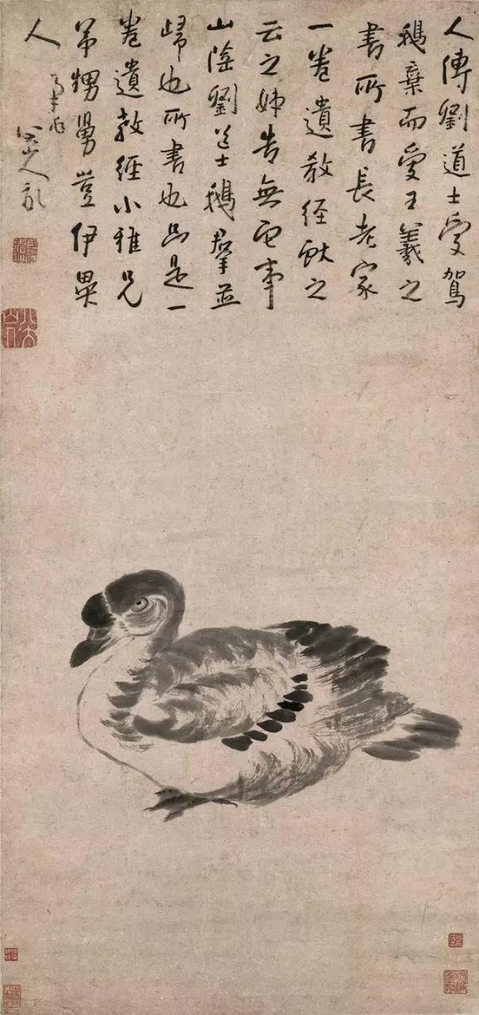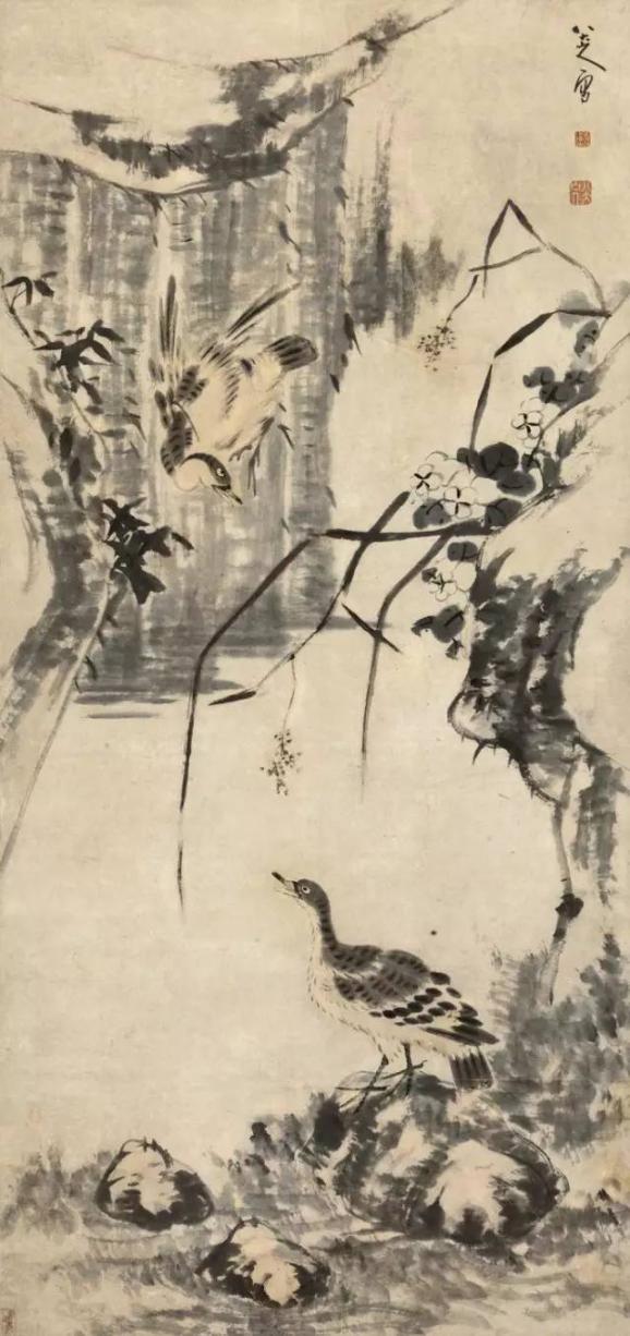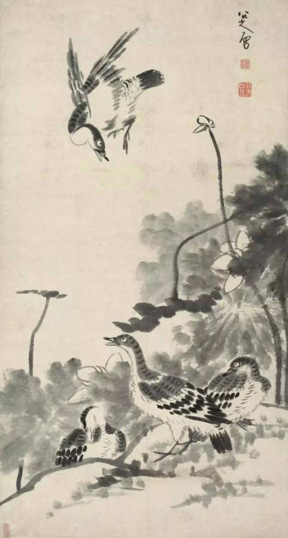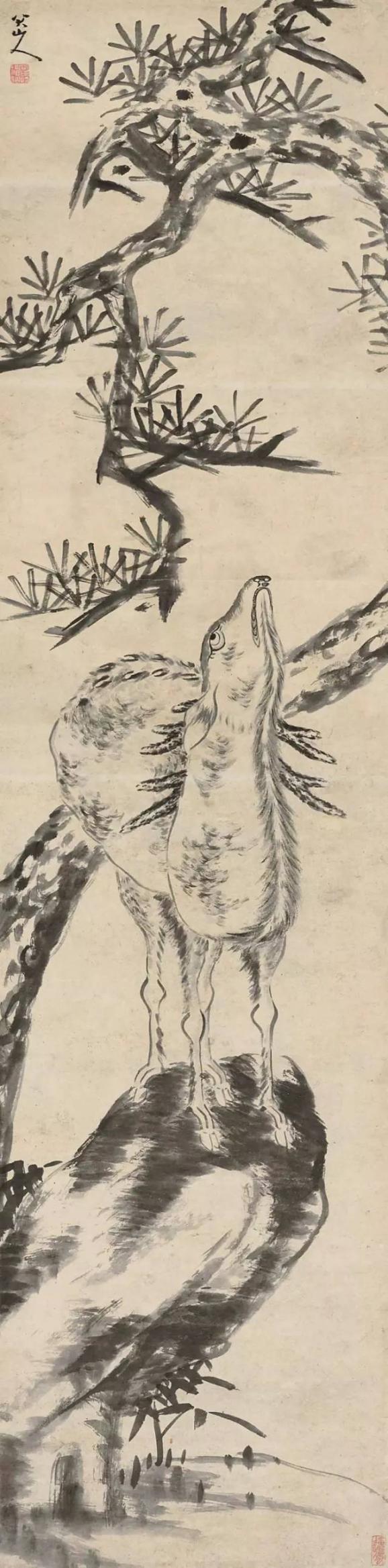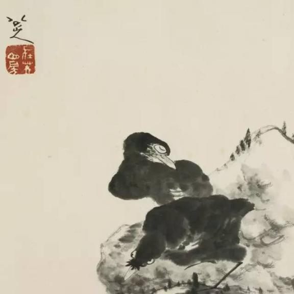 有些禽鸟拳足缩颈,一副既受欺又不屈的情态,在构图、笔墨上也更加简略。这些形象塑造,无疑是画家自的写照,即“愤慨悲歌,忧愤于世,一一寄情于笔墨”。