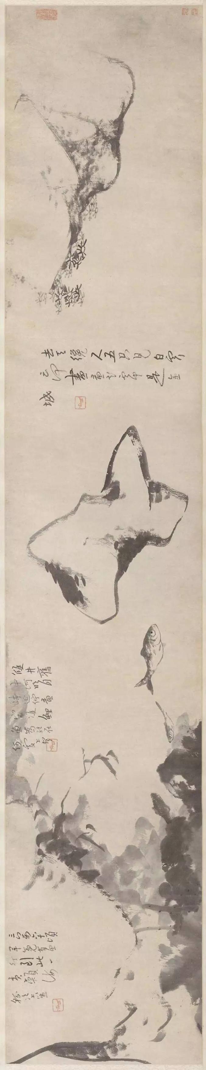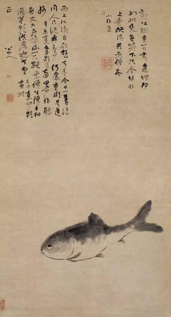 八大山人能诗,书法精妙,所以他的画即使画得不多,有了他的题诗,意境就充足了,他的画,使人感到小而不少,这就是艺术上的巧妙。